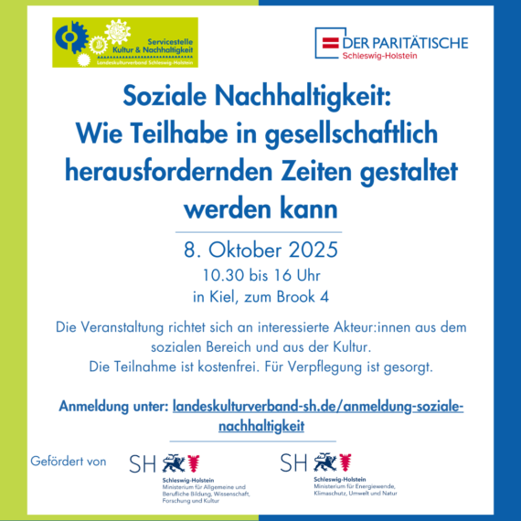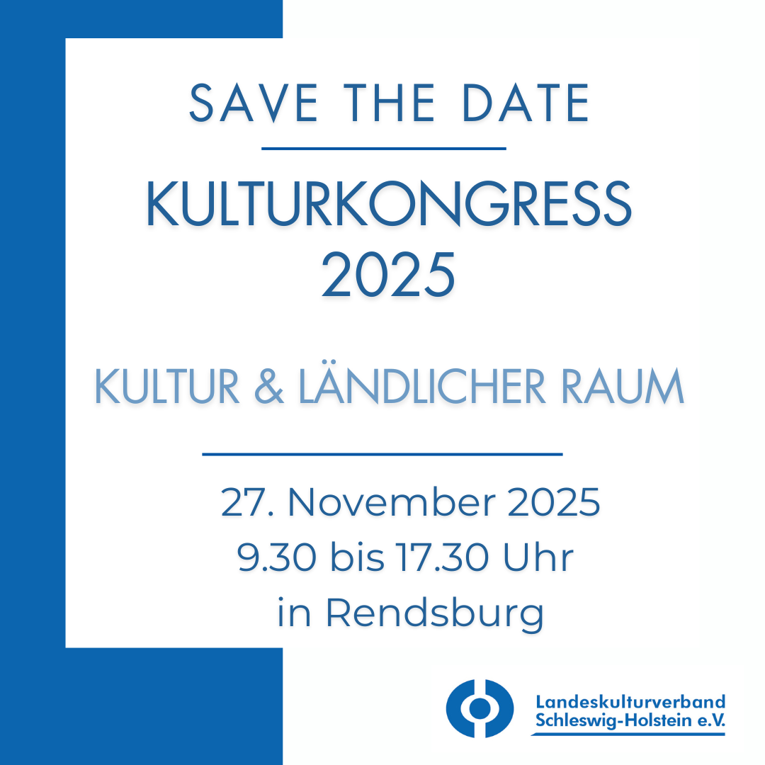 Wie geht es der Kultur im ländlichen Raum? Unser diesjähriger Kulturkongress ‘Kultur & ländlicher Raum’ findet am 27. November in Rendsburg statt. Zu diesem laden wir Sie schon jetzt herzlich ein. Wir wollen uns mit Ihnen und unseren Expert:innen in diesem Jahr mit den aktuellen Gegebenheiten und Entwicklungen in den […]
